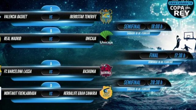 Gran Canaria acoge una nueva edición de la Copa del Rey de basket. El Real Madrid comenzará la defensa del título ante Unicaja. Los otros tres emparejamientos son: Barcelona - Baskonia, Valencia Basket - Iberostar Tenerife y Fuenlabrada - Gran Canaria.