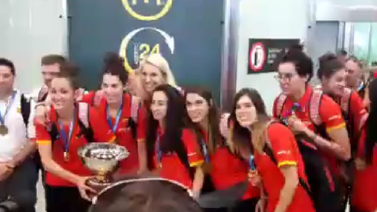La selección española de baloncesto femenino llegó a Madrid con el título de campeonas de Europa bajo el brazo. Decenas de personas vitorearon a las campeonas y Laia Palau estuvo atendiendo a los medios de comunicación a su llegada.