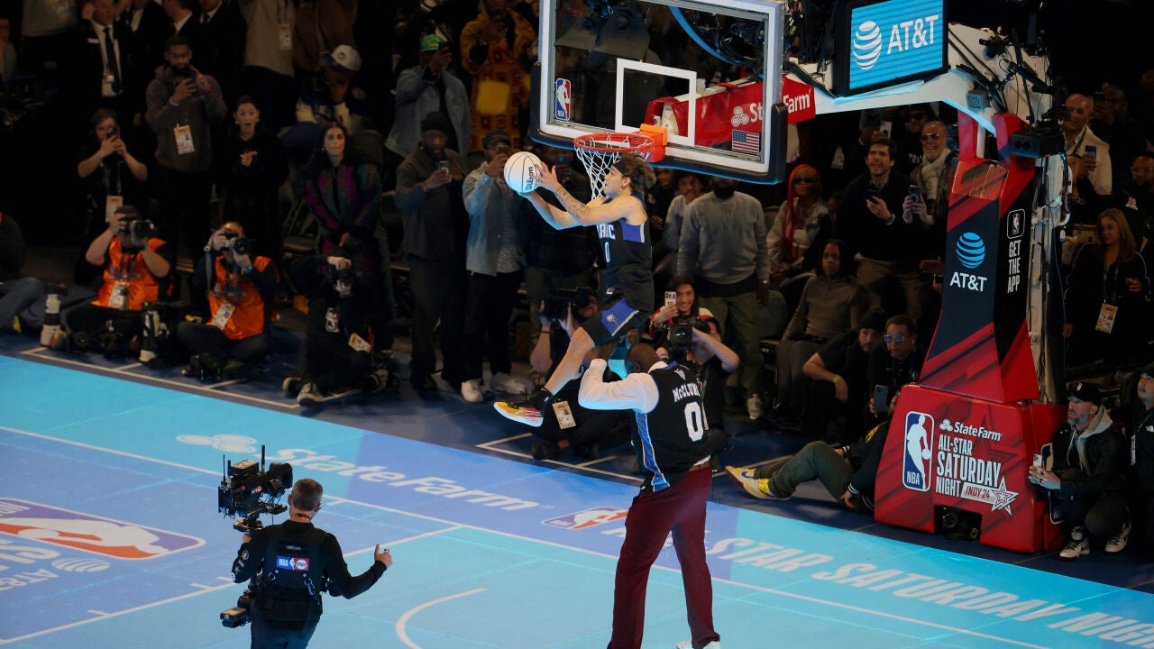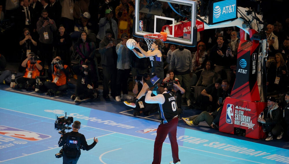 Mac McClung, jugador de los Osceola Magic en la G League, sigue siendo el rey de los mates y anoche se volvió a coronar como campeón del concurso de mates en el All-Star celebrado en el Lucas Oil Stadium de Indianápolis (Indiana). El base de 1,88 metros ejecutó cuatro mates para retener su corona y, en el último de los cuatro, incluso se atrevió a saltar por encima de Shaquille O'Neal...