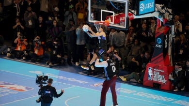 El jugador de la G-League revalida su título de campeón del concurso de mates en el All-Star de Indianápolis.