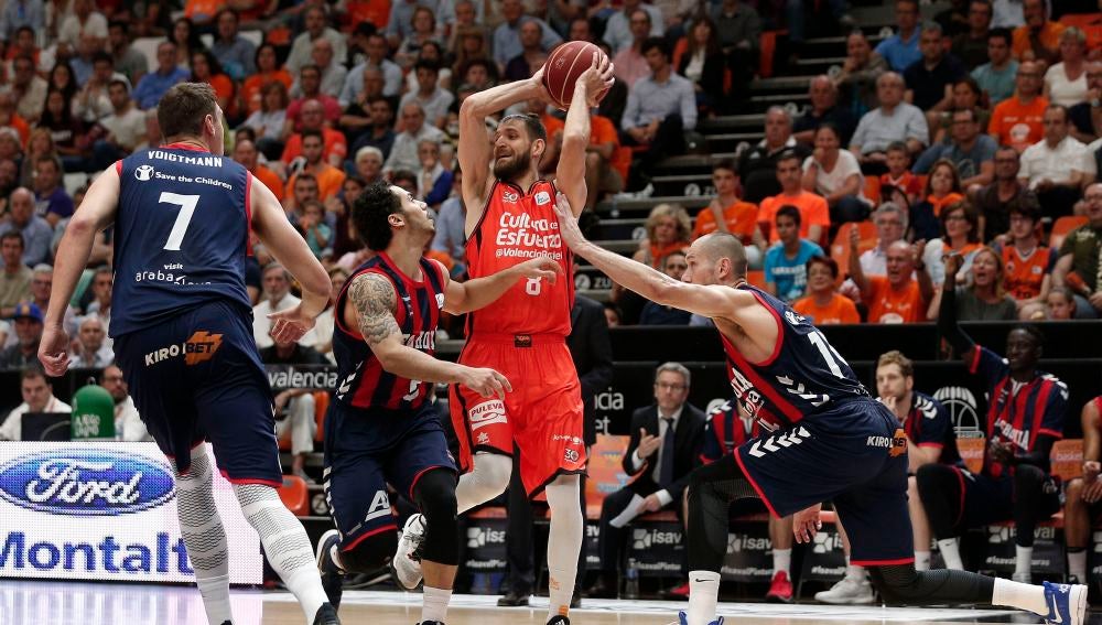El Valencia Basket sacó provecho de la valentía y la ambición con la que encaró el cuarto encuentro de la semifinal de la ACB y derrotó y eliminó a un irregular Baskonia que vio como todos sus intentos de remontada en la segunda parte se vieron neutralizados por la calma de los locales y la excelente lectura de Fernando San Emeterio.