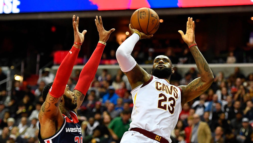 El alero estrella LeBron James vivió otra jornada especial y completa al conseguir triple-doble de 20 puntos, 15 asistencias y 12 rebotes con el que los Cavaliers de Cleveland se impusieron de visitantes 106-99 ante los Wizards de Washington y lograron el decimoctavo triunfo en 19 partidos.