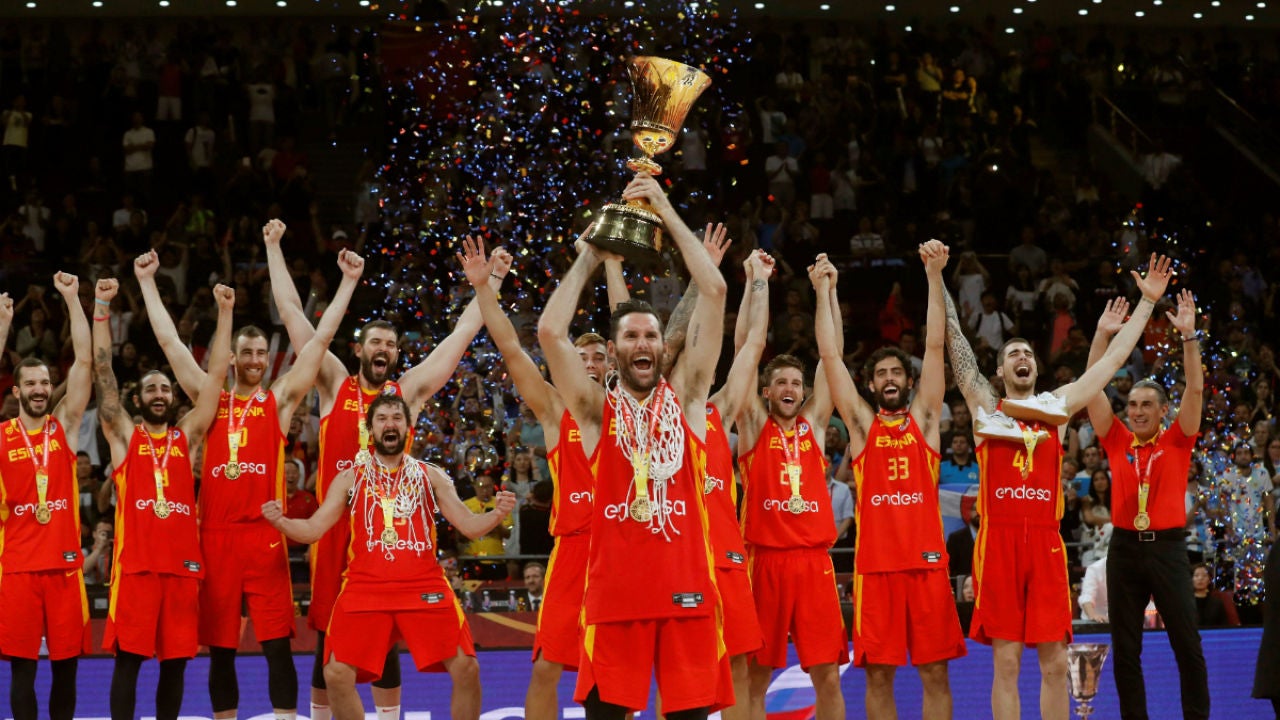 Rudy Fernández capitán de la Selección española, ha sido el encargado de levantar la Copa de Campeón tras la final frente a Argentina en el Mundial de China. En el momento de levantar la Copa, Rudy le dio un buen golpe en la cara a su compañero Willy Hernangómez. ¡Vaya momento!