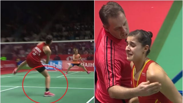 Carolina Marín se lesionó en la jugada del 9-2. Trató de continuar en el partido pero, con 10-4, se dejó caer sobre el suelo antes de comunicar su retirada entre lágrimas.