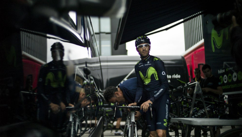 Auxiliado por su director, Eusebio Unzue, Valverde se retiró de la carrera. La lluvia ha dificultado la prueba inaugural y las caídas se han multiplicado. En la misma curva cayó minutos antes el francés Tony Gallopin.