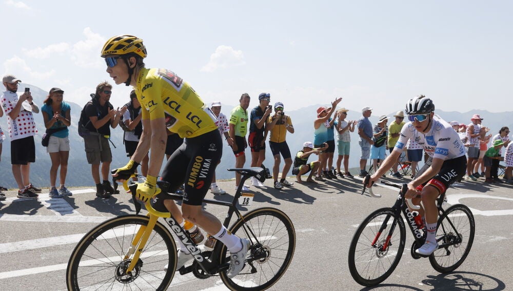 El ciclista del UAE Team Emirates se fue al suelo en la bajada del Col de Spandelles y el líder del Tour decidió esperarle. Vingegaard y Pogacar se dieron la mano en un deportivo gesto.