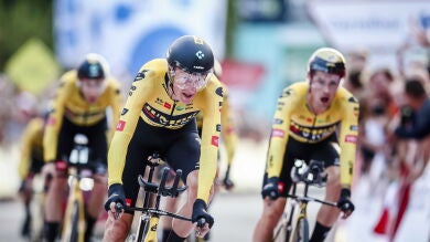 Después de exhibirse en el Tour de Francia, el equipo neerlandés empezó también de la mejor manera estas nuevas tres semanas dejando un registro de 24.40,290 y 56,66km/h.