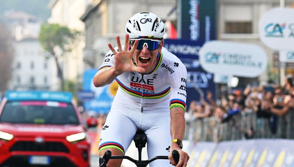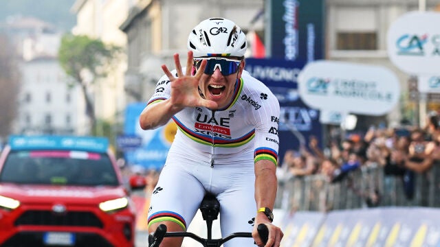 Pogacar es un caníbal en color. Nadie había ganado antes que él cuatro veces este monumento lombardo... y ya suma cinco seguidos. Superó así al italiano Alfredo Binda y se colocó en lo más alto de ganadores junto a Coppi, que consiguió levantar los brazos cinco veces entre 1946 y 1954.