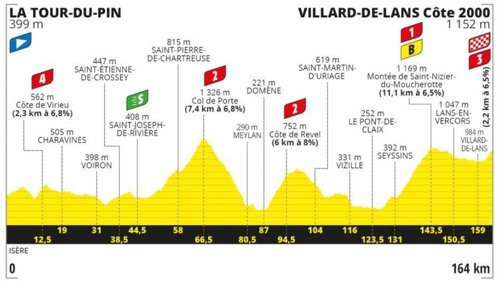 Tras una jornada de descenso, el Tour de Francia afronta hoy, martes 15 de septiembre, la etapa 16, una recorrido de 164 kilómetros, entre LaTour-du-Pin y Villard-de-Lans.