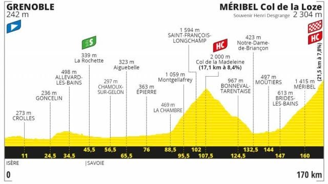 La etapa está marcada por las dos ascensiones a La Madeleine y Meribel Col de la Loze, dos puertos fuera de categoría y que marcan la denominada por los expertos como etapa reina del Tour de Francia.