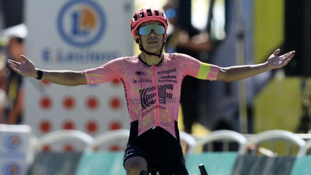 Richard Carapaz se ha sumado esta tarde a la selecta lista de ciclistas que han ganado etapas en las tres Grandes Vueltas (Vuelta España, Giro de Italia y Tour de Francia) tras imponerse con autoridad al británico Simon Yates antes de llegar a la estación de esquí de Superdévoluy. Primera victoria también para Education-EasyPost en esta edición.