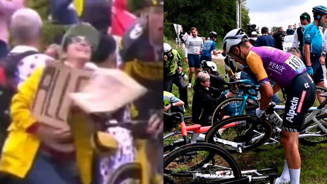 En la primera etapa del Tour de Francia celebrada en el día de ayer se produjo un suceso que puede marcar un antes y un después en el ciclismo moderno. Cuando quedaban apenas 45 kilómetros para terminar el recorrido, la pancarta de una aficionada provocó la caída masiva de medio pelotón. Por esto, el Tour de Francia tiene intención de presentar una denuncia contra la espectadora.