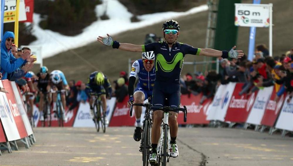 Valverde, a punto de cumplir 37 años, pudo hacer realidad su ilusión de dedicar la victoria al italiano Michele Scarponi, fallecido tras ser arrollado por una furgoneta. Cruzó la meta por delante del irlandés Dan Martin (Quick Step) y del polaco Michal Kwiatkowski (Sky).