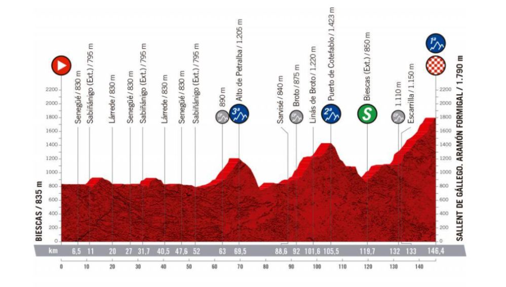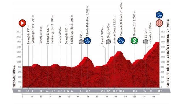 Nueva cita con la montaña en la etapa 6 de la Vuelta a España 2020, con un recorrido de 146,6 kilómetros entre Biescas y Formigal, cima aragonesa que sustituye al Tourmalet, meta inicial suprimida por la crisis sanitaria.