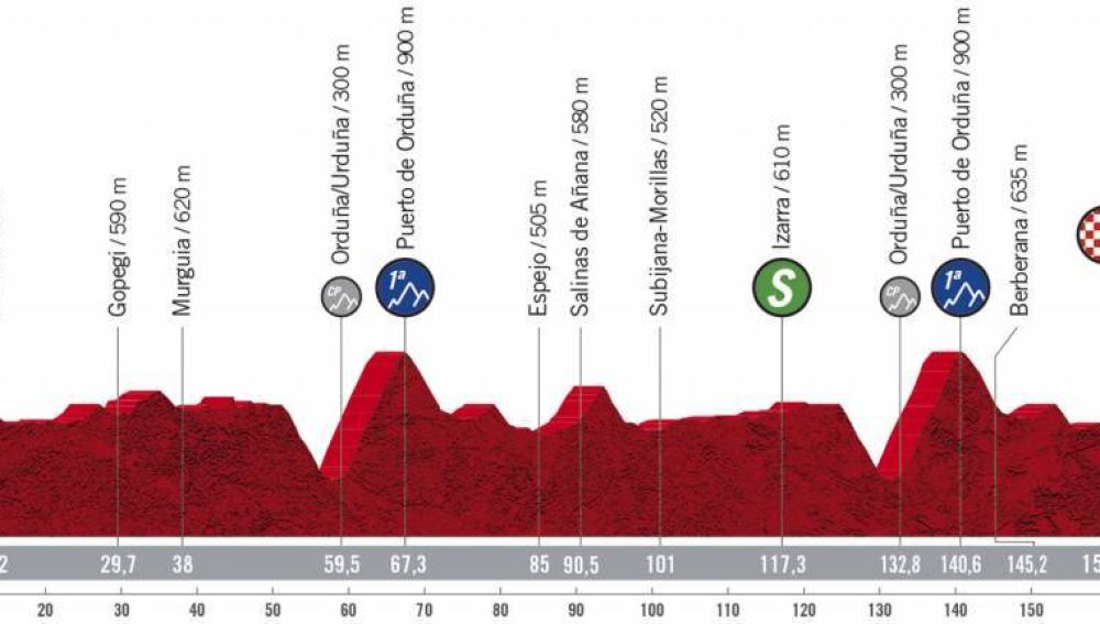 Se trata de una jornada de media montaña, con dos pasos por el Alto de Orduña, puerto de primera categoría y que cuenta con rampas del 14%.