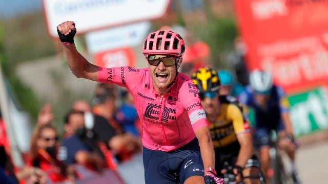 Etapón en la montaña de Cullera. El ciclista danés Magnus Cort Nielsen se ha llevado la victoria en un espectacular final en el que nadie pudo superarle. Primoz Roglic, que se acercó mucho al corredor del EF Education, terminó segundo.