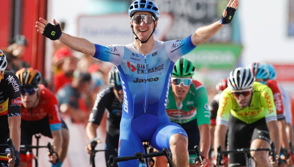 El australiano de BikeExchange fue el más rápido en la llegada masiva a Cabo de Gata. Alaphilippe tuvo que abandonar con rotura de clavícula y Simon Yates, Pavel Sivakov y varios Kern Pharma se retiraron por COVID-19.