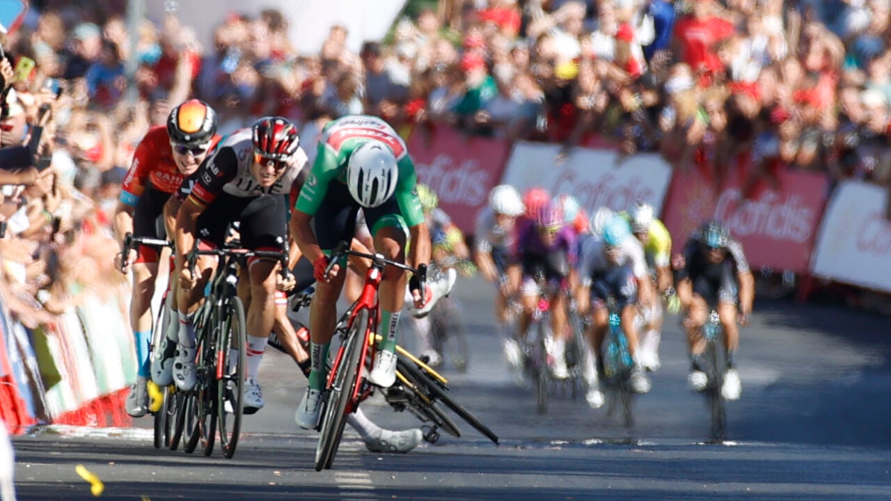 La Vuelta a España nunca defrauda, tampoco en un día en el que no se esperaban grande emociones. La llegada a Tomares fue de todo menos tranquila para los favoritos. El líder de la general, Remco Evenepoel, sufrió un pinchazo y Primoz Roglic se fue al suelo cuando trataba de descontar unos segundos en la llegada al esprint.