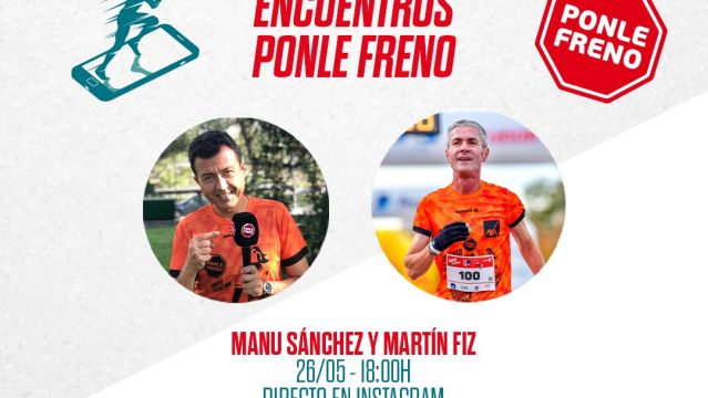 Estos encuentros virtuales serán conducidos por Manu Sánchez, presentador de Antena 3 Deportes, y los 'speakers' oficiales Alberto Hernández y José María Yepes. La primera cita tendrá lugar el martes 26 de mayo a las 18:00h, y los protagonistas serán los embajadores del Circuito Ponle Freno, Manu Sánchez y Martín Fiz, campeón de Europa y del mundo de maratón.Lo podrás seguir en el perfil oficial de @carrerasponlefreno, donde estarás al tanto del resto de 'Charlas Ponle Freno'.
