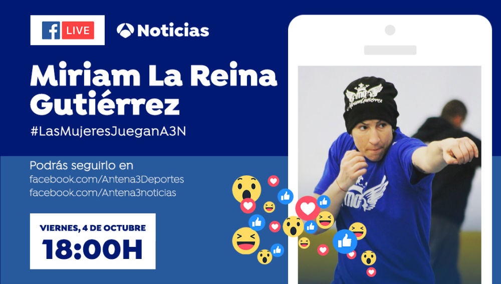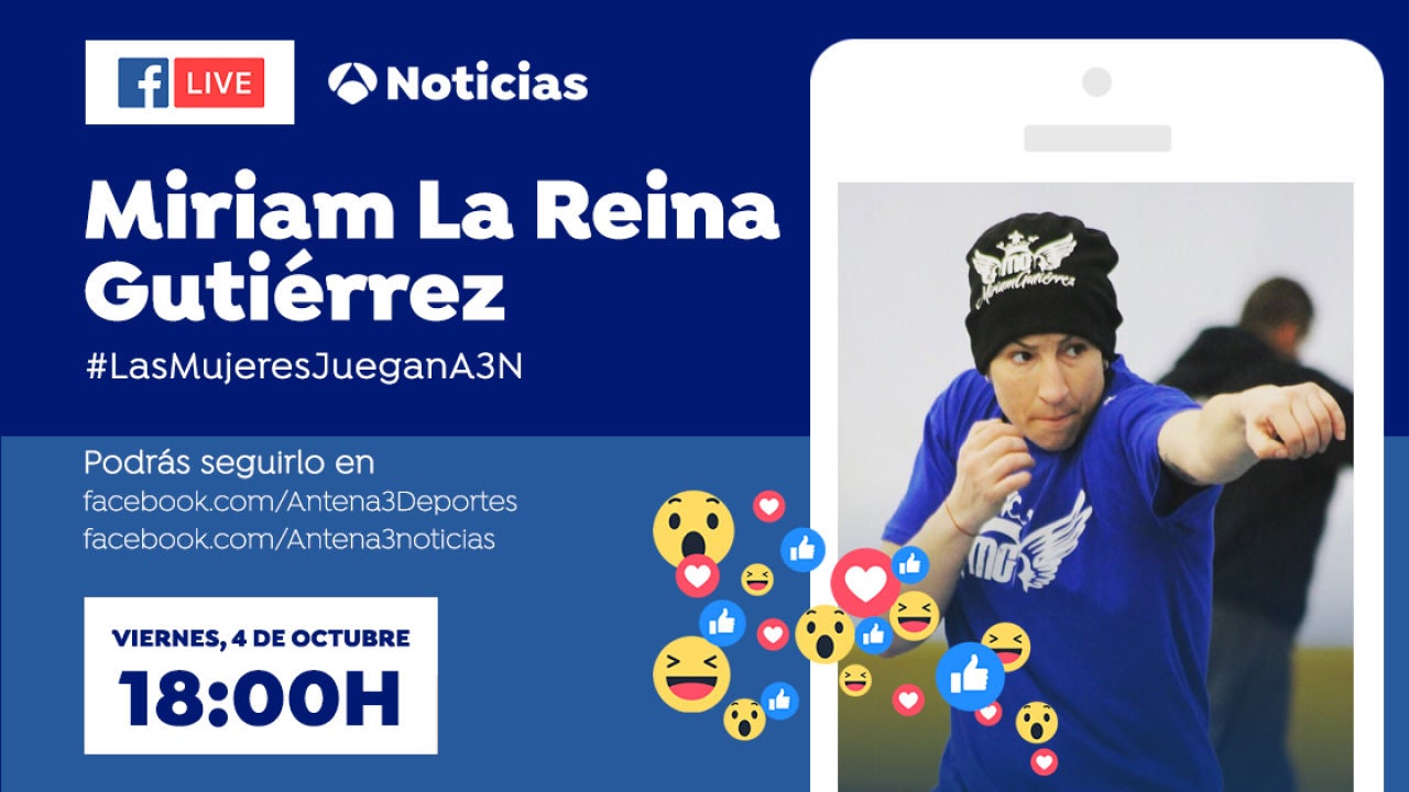 La boxeadora española Miriam 'La Reina' Gutiérrez es la primera invitada a nuestro espacio #LasMujeresJueganA3N. Podrás seguir el encuentro la púgil de Torrejón de Ardoz este viernes 4 de octubre a partir de las 18:00 h en el Facebook de Deportes y Noticias de Antena 3.