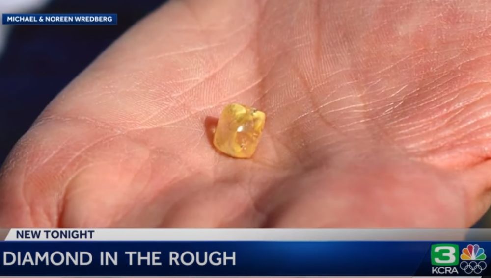 Noreen Wredberg y su esposo, Michael, comenzaron a caminar por un sendero alejado de la mina y, en un momento dado, se toparon con un diamante de color amarillo.