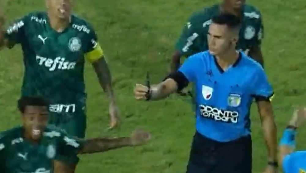El partido se detuvo durante unos minutos y las cámaras grabaron al árbitro principal empuñando un cuchillo para dárselo a uno de sus asistentes y que este lo llevara fuera del césped.