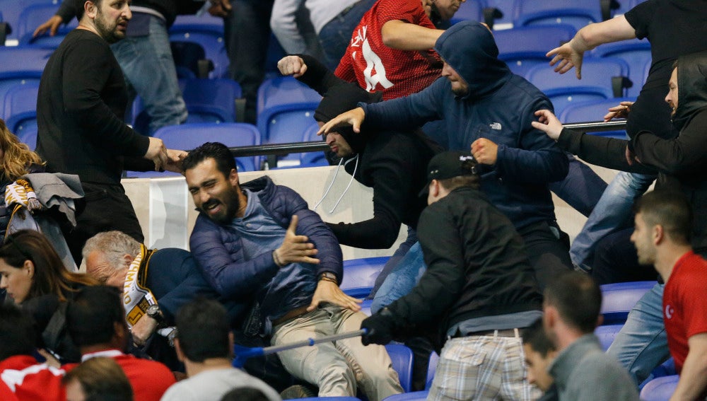 El estadio del Olympique de Lyon ha presenciado un enfrentamiento entre los aficionados del Lyon y los del Besiktas. Los turcos habrían cargado contra un empleado del estadio, que fue herido y motivo por el que empezó toda la pelea.