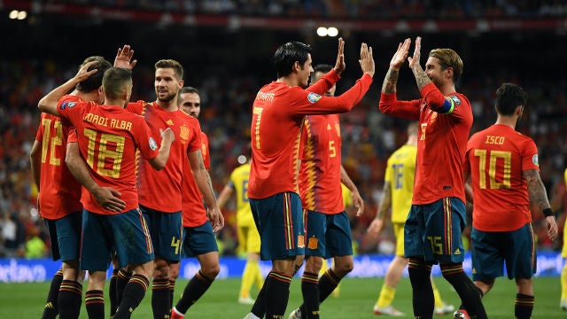 Alineación de España: Kepa, Llorente, Alba, Ramos, Navas, Busquets, Fabián, Saúl, Ceballos, Rodrigo y Alcácer