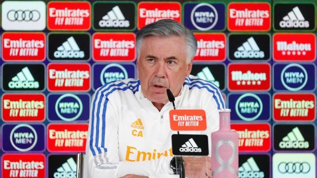 El entrenador del Real Madrid, Carlo Ancelotti, comparece ante los medios antes del partido de Liga contra el Athletic Club: "Un partido muy entretenido y difícil que vamos a jugar en un ambiente que me gusta mucho, San Mamés. Sí, tenemos bajas pero puede ser una oportunidad para mostrar la calidad de la plantilla. Vamos a intentar ganarlo, como siempre".