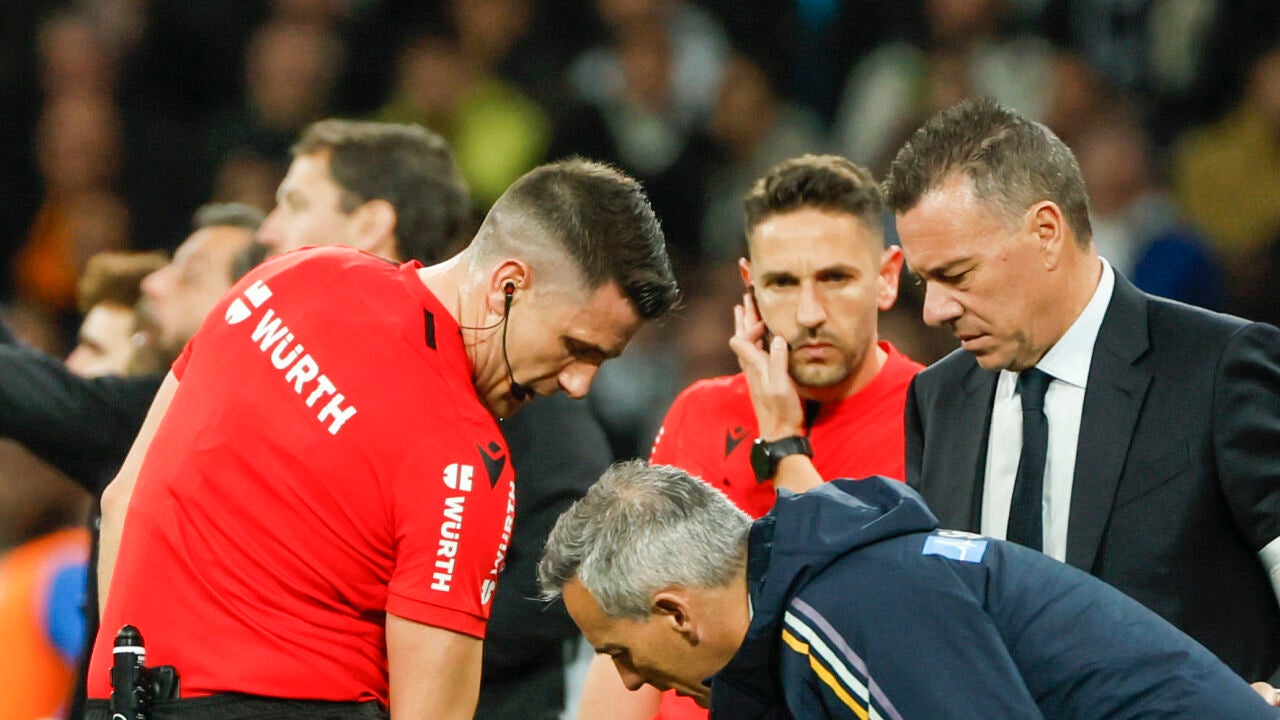 El colegiado Isidro Díaz De Mera se lesionó en la segunda parte del Real Madrid - Sevilla y el Bernabéu tiró de ironía pidiendo que saliera Negreira.