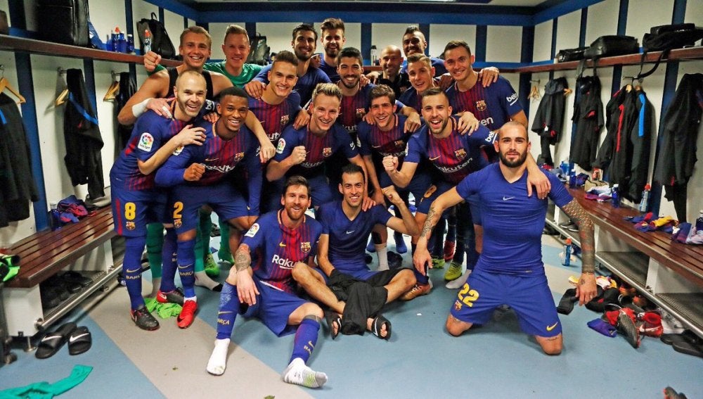 El Barcelonase va más que feliz de vacaciones navideñas. A una impoluta hoja de servicios en lo que llevamos de Liga, se une la reciente victoria ante el Real Madrid,el eterno rival, por 0-3, lo que deja a los blancos a 14 puntos en la lucha por el título. Los jugadores celebraron el triunfo en el vestuario del Bernabéu.