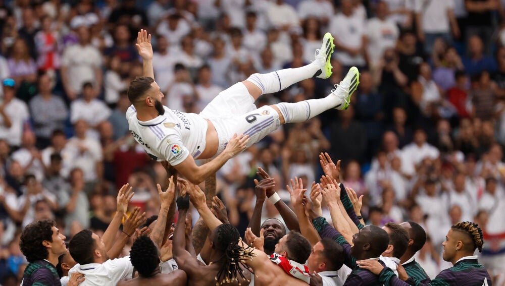 14 años de goles y éxitos en 20 segundos de ovación. Las despedidas nunca son lo suficientemente justas pero el Santiago Bernabéu se rindió completamente al que ha sido su atacante los últimos 14 años. Karim Benzema dijo adiós al Madrid marcando el que ha sido su gol número 354.