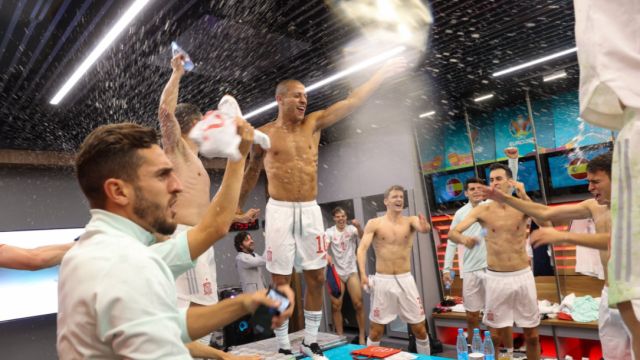 Los jugadores de la selección española enloquecieron en el vestuario tras vencer a Suiza en unos penaltis de infarto. Unai Simón fue el gran protagonista.
