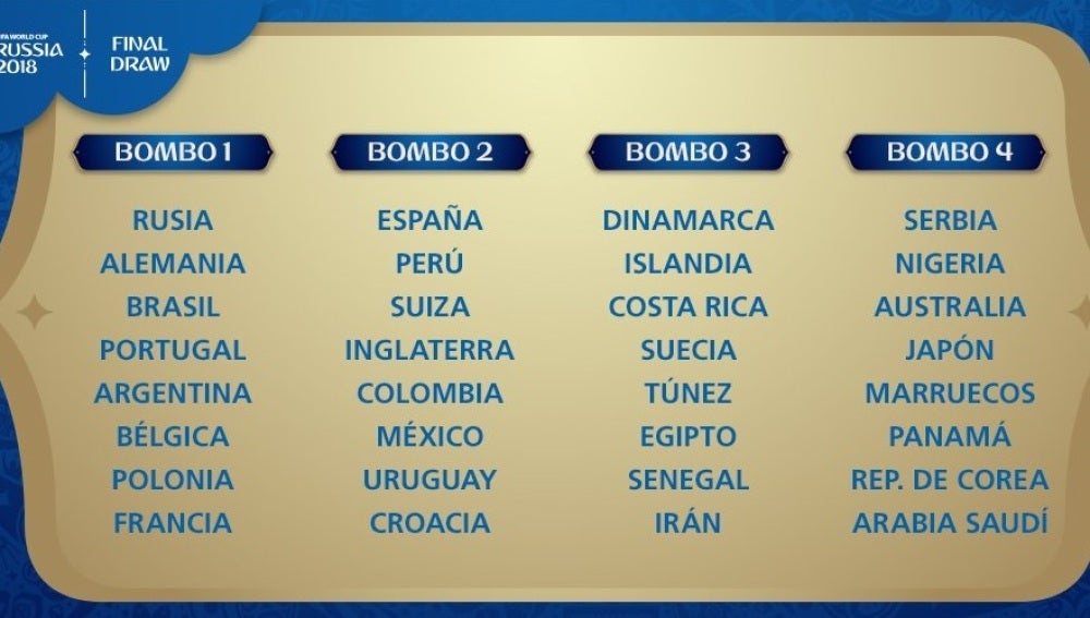 Bombos para el Sorteo Final de #Rusia2018