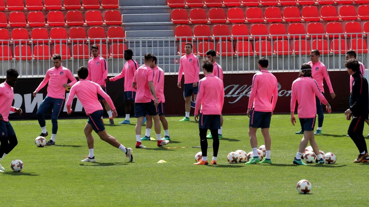 El conjunto rojiblanco entrenó por última vez antes de recibir al Arsenal en la vuelta de semifinales de la Europa League.Simeone insistió con un once con Diego Costa y Griezmann en la delantera.