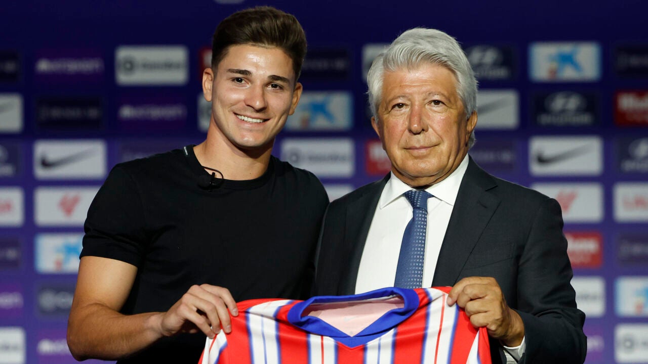 El presidente rojiblanco ha recalcado "su amplio palmarés", el de la "carrera de un campeón", y ha resaltado que el Atlético de Madrid tiene una "relación especial con Argentina": "Es imposible entender este club sin el impacto que han tenido aquí los jugadores argentinos. Ahora tú, Julián. Tu fichaje, como todo lo bueno en la vida, se ha hecho esperar, hace unos meses era un sueño y ahora es una realidad. Bienvenidos tanto tú como tu familia al Atlético de Madrid".