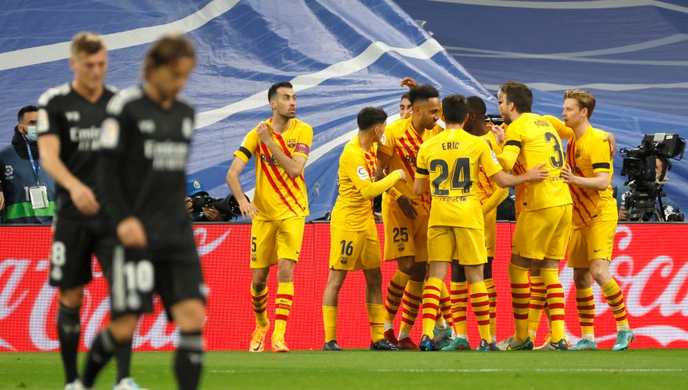 Los de Xavi endosan una goleada histórica al Madrid en el Bernabéu y postula su candidatura a pelear la Liga a los blancos. Dobletes de Ferran y Aubameyang. Imagen catastrófica de los de Ancelotti.