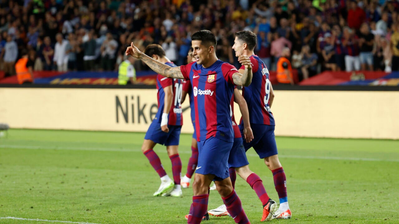 Los de Xavi le dieron la vuelta en 8 minutos a un partido que tenían medio perdido gracias a un doblete de Lewandowski y al tanto decisivo de Cancelo en el 89. Los culés duermen colíderes de Liga junto al Girona. Mañana, el derbi.