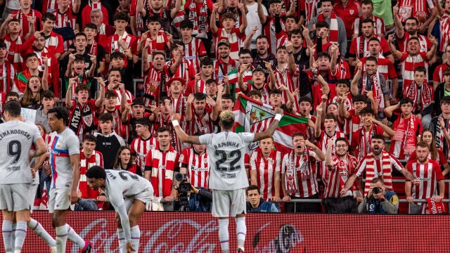 El empuje de San Mamés, que hoy marcó un récord de asistencia en su feudo con 49.741 almas, no fue suficiente para que su equipo sumara ni siquiera un punto en un partido en el que los vascos encerraron al Barça en su área. Hoy la suerte estuvo del lado azulgrana en otra victoria por la mínima que deja al Madrid a 9 puntos. El Barça sale indemne de San Mamés y de un día difícil para el club después de que el Real Madrid anunciara que se personará en la causa del 'caso Negreira'. En una semana, el Clásico. Saltarán chispas... pero ¿sigue habiendo Liga?