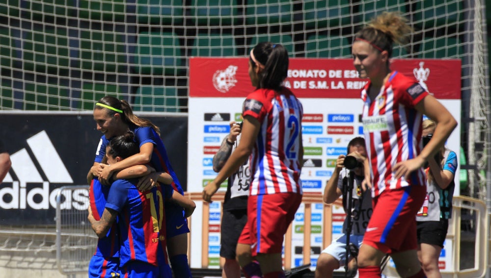 El Barcelona se ha 'vengado' del Atlético en la Copa de la Reina. Las azulgranas, con una gran Jenni Hermoso, han derrotado a las rojiblancas por 4-1 con un doblete de Jenni y un tanto de Alexia Putellas y de Bonmatí. Las culés suman así su quinto entorchado copero.