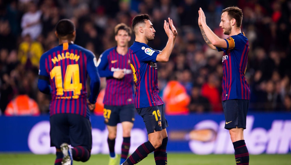 Dos avisos que despertaron al equipo de Valverde que, tras adueñarse del balón, no tardó en abrir la lata. De hecho, el primer tanto (min.18) llegó tras una jugada coral impulsada por Denis y Rakitic que terminó con una acción de '9' de Munir El Haddadi. El delantero español recibió de espaldas con la zurda, su pierna buena, y disparó con la diestra para superar a Palatsí.