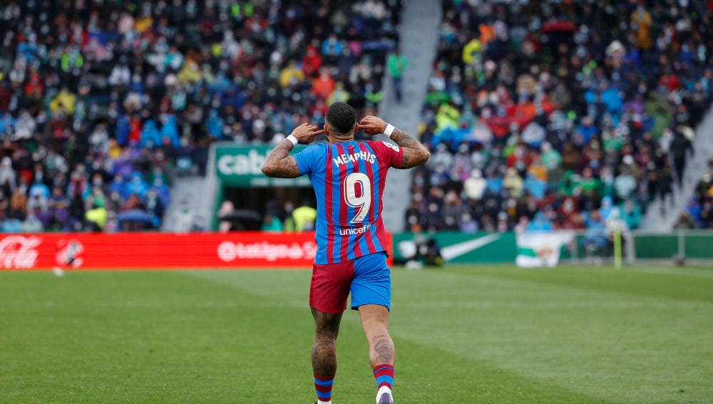 Un gol de penalti de Memphis dio la victoria al Barcelona en los últimos 10 minutos después de empezar perdiendo. Hernández Hernández no pitó un penalti claro a favor del Elche que podría haber supuesto el empate. Se pone 3º el equipo de Xavi.