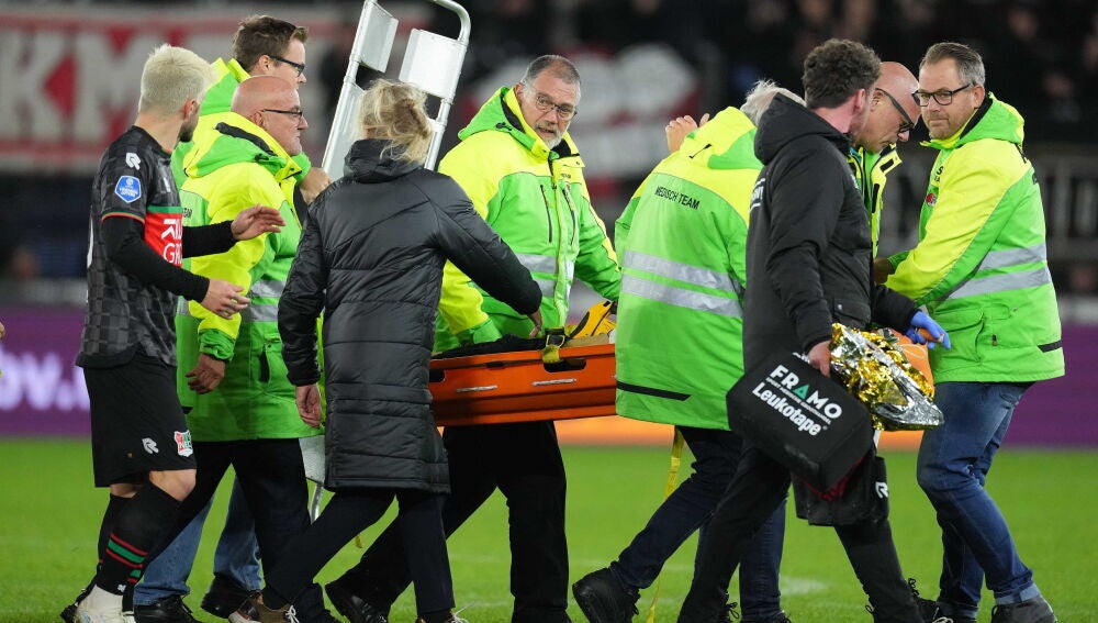 "El jugador está consciente y ha sido sacado del terreno de juego", comunicó su club, el NEC Nimega que informó de que el futbolista fue trasladado al hospital.