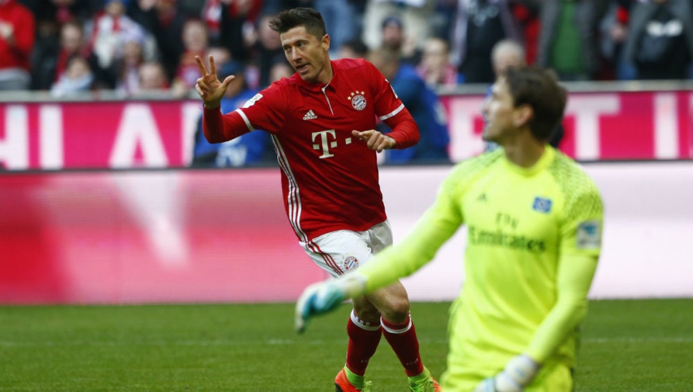 El Bayern mantuvo su ventaja como líder del torneo alemán al golear al Hamburgo por 8-0 mientras que su más inmediato perseguidor, el RB Leipzig, se impuso al Colonia por 3-1 y sigue cinco puntos por debajo. El tercer clasificado, el Borussia Dortmund, se impuso a domicilio (0-3) al Friburgo y continúa ocho puntos por debajo del Leipzig.