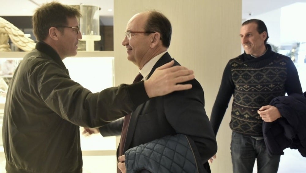 Posteriormente, el de Córdoba se trasladó junto a su equipo al hotel de concentración del Sevilla, en el que fue recibido por el presidente de la entidad, José Castro, y el director deportivo, Óscar Arias.