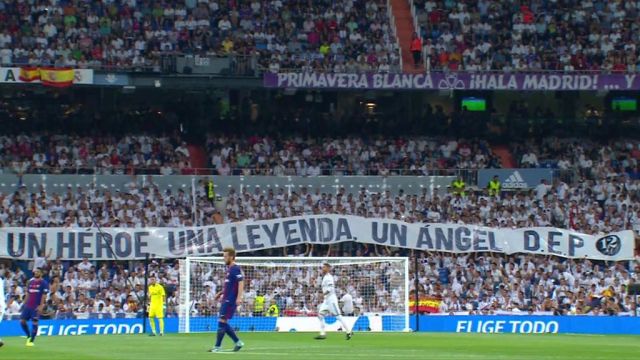 El Bernabéu quiso recordar a Ángel Nieto, campeón del mundo de motociclismo que falleció recientemente en Ibiza por un accidente en su quad. La afición mostró una gran pancarta en el fondo y muchos aplausos durante la vuelta de la Supercopa contra el Barça.