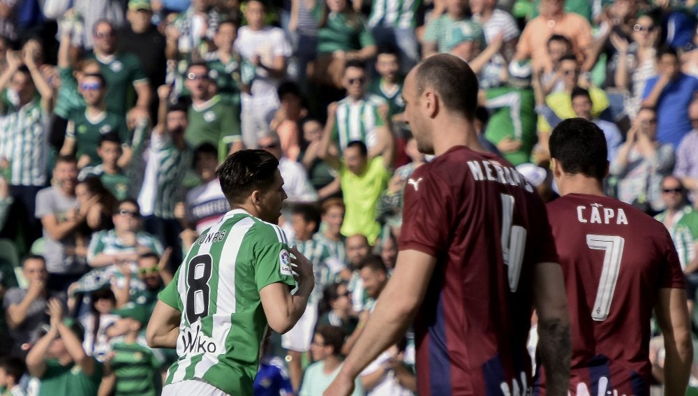 El Real Betis, después de tres derrotas seguidas, se reencontró con el triunfo (2-0) y tranquilizó algo sus ánimos y el de sus hinchas, a la vez que frena las aspiraciones europeas del Eibar, que fue incapaz de sobreponerse al tanto que en el primer minuto logró el francés Jonas Martin.