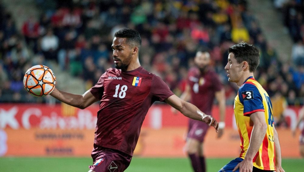 Jhon Murillo y Roberto Rosales, que actuó en el lateral izquierdo del 4-5-1 de Rafael Dudamel, pudieron avanzar a la Vinotinto, pero los palos de la portería catalana repelieron sus intentos.