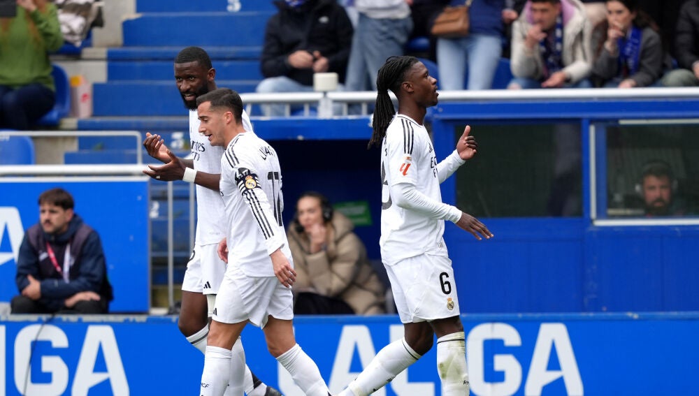 Tres puntos y poco más. Un golazo de Camavinga en el minuto 34 fue suficiente para que el Real Madrid se impusiera este domingo en Mendizorroza (0-1). Los blancos, que sufrieron la expulsión por roja directa a Mbappé minutos después (38'), supieron mantener la ventaja en otro partido muy gris en cuanto a lo futbolístico pero que les mantiene a cuatro del Barça con 21 puntos todavía por disputarse.