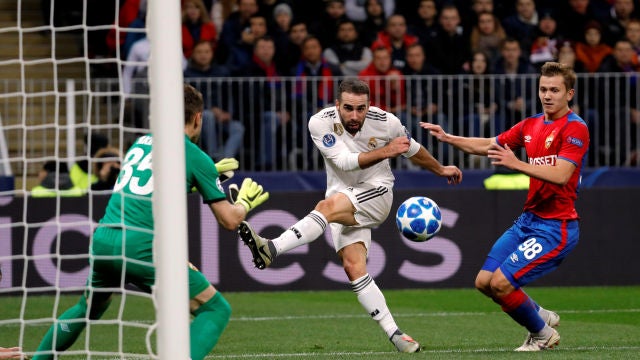 Carvajal tuvo que ser sustituido en el descanso por unas molestias en el gemelo izquierdo. Si Lopetegui ya no pudo contar con Marcelo, Isco o Sergio Ramos para su segundo compromiso en Champions, el lateral tampoco pudo acabar el partido.
